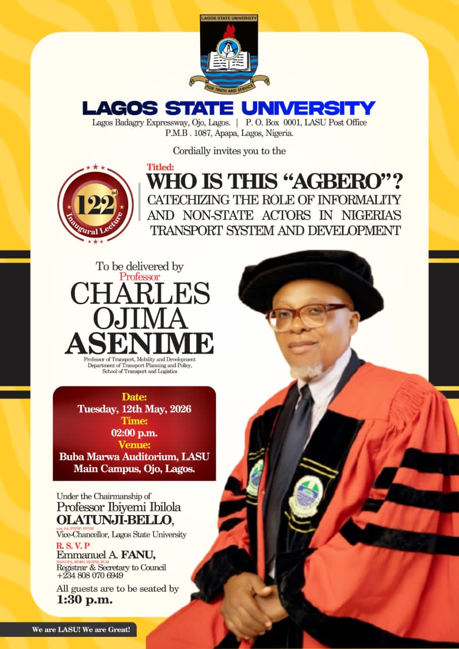Professor Charles Ojima Asenime to Deliver LASU’s 122nd Inaugural Lecture